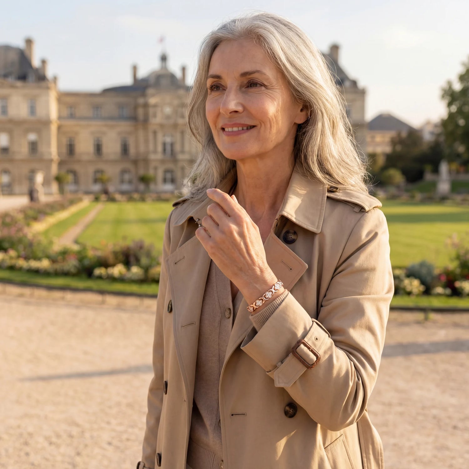 The Camelia bracelet is crafted from pure copper with a durable rose-gold finish, set with premium crystal accents, and fitted with discreet permanent magnets (~3,800 gauss each) inside select links. It’s nickel- and lead-free for everyday wear.